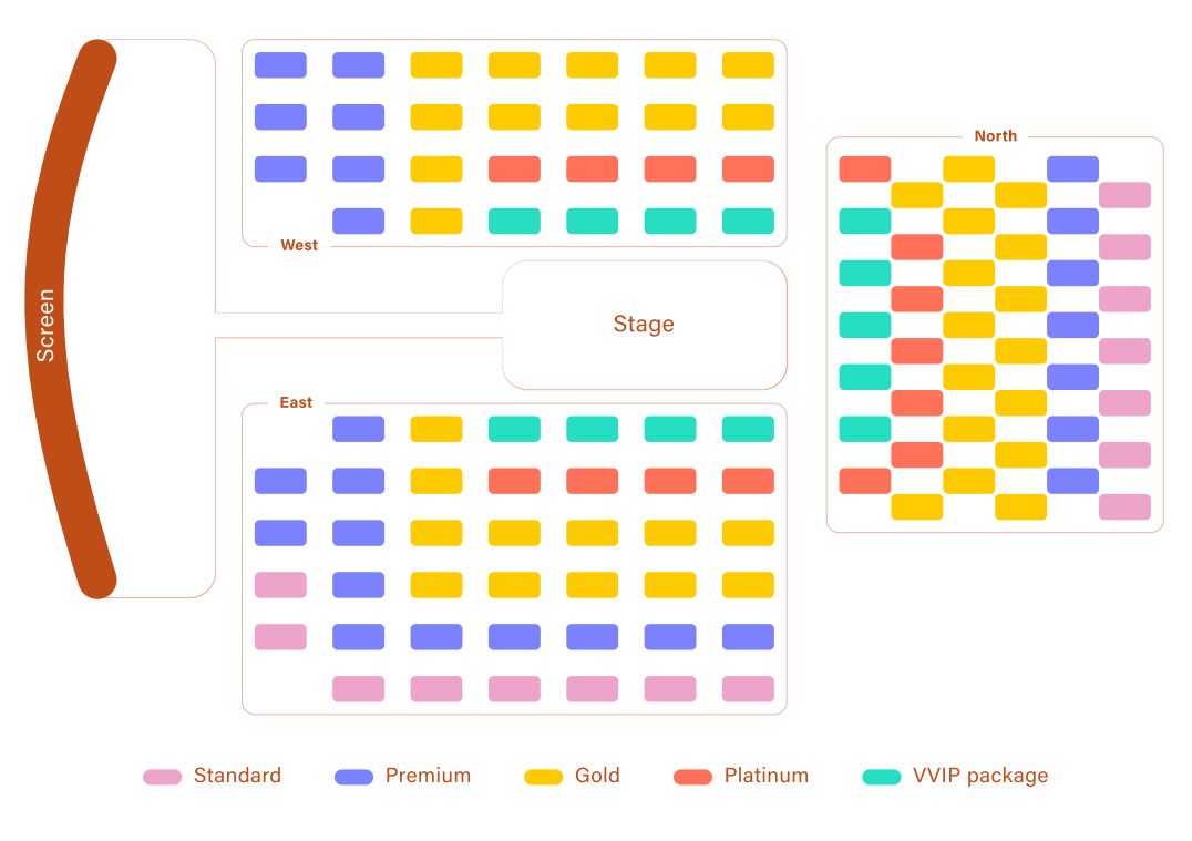 GOLD: Enhanced seating closer to the stage, featuring a 4-course meal prepared by our 5-star chef, along with waiter service.